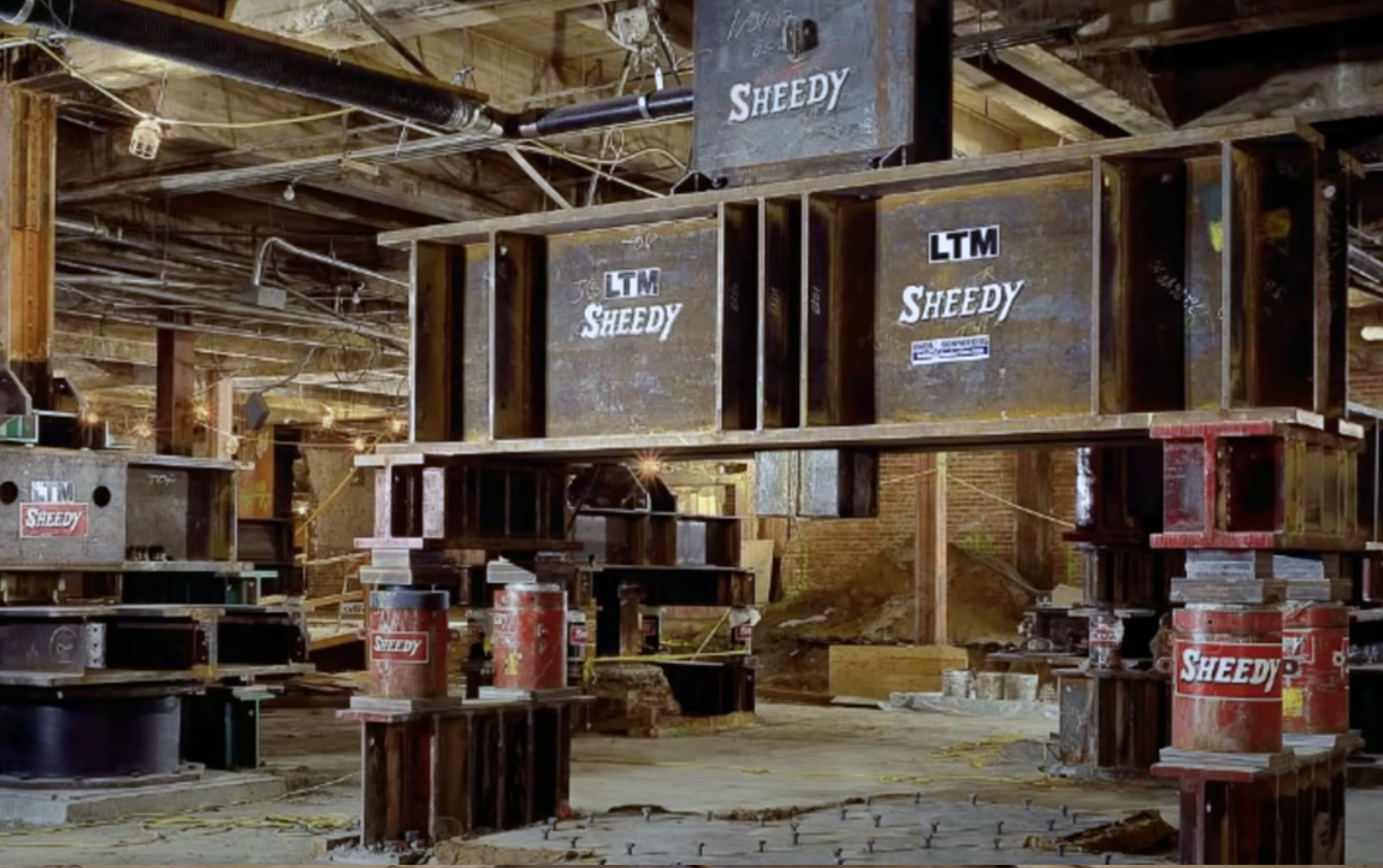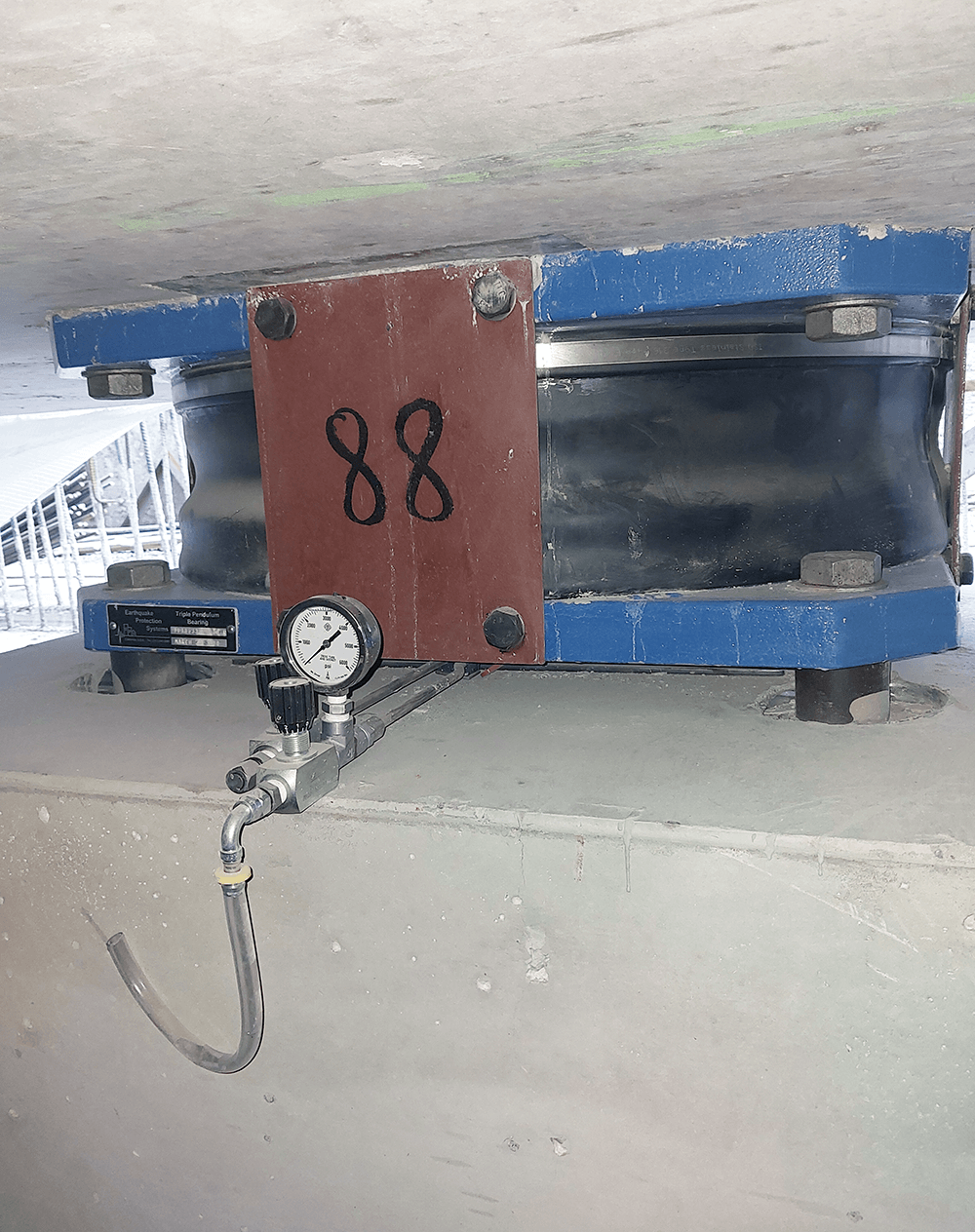 Seismic base isolation is a relatively new seismic retrofitting technique that enhances a structure’s flexibility to withstand lateral forces during an earthquake. When placed under a load-bearing column of a bridge or building, base isolators function like large “motor mounts.” During a seismic event, these isolators absorb the impact, significantly reducing the seismic forces transmitted through the building.